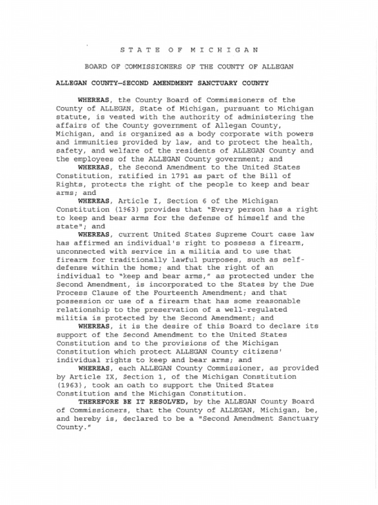 Allegan County Second Amendment Sanctuary Resolution (Feb 2020) PDF