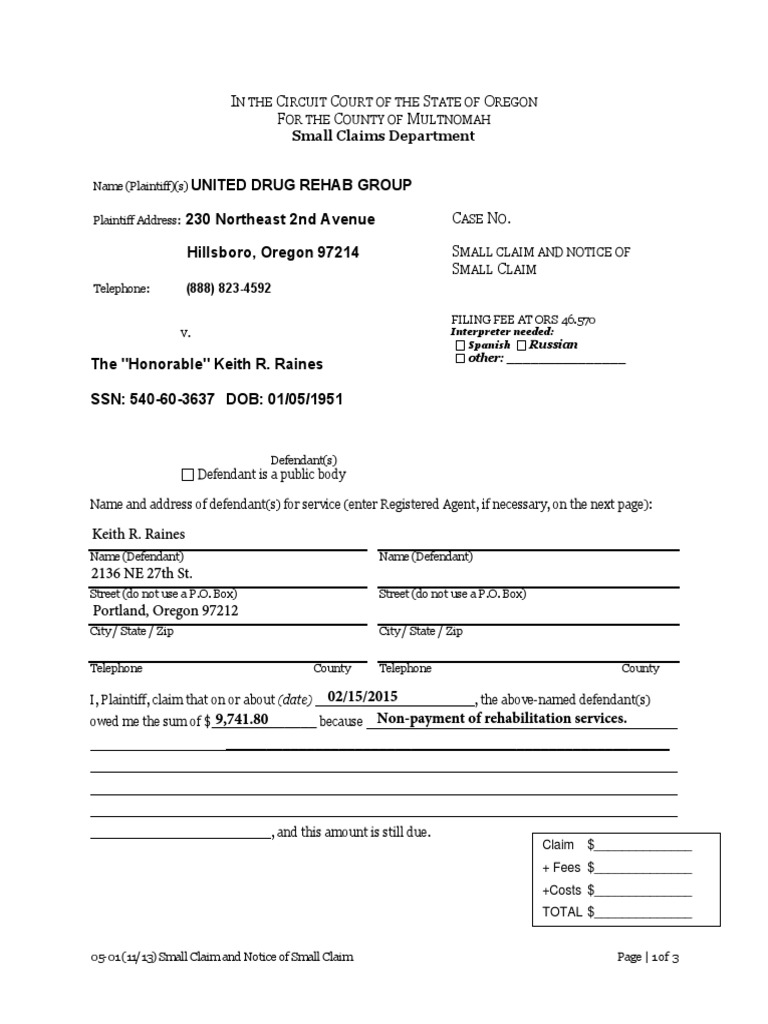 Keith R Raines Small Claims Judgement PDF Oregon Registered Agent