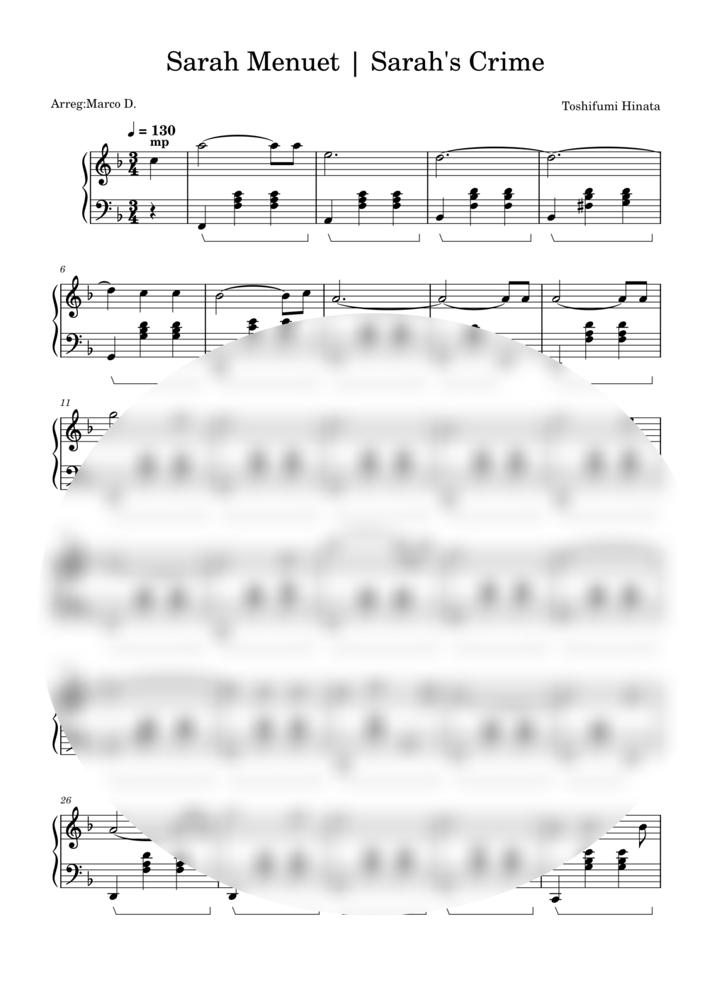 Sarah Menuet Sarah's Crime Partituras Toshifumi Hinata Piano solo
