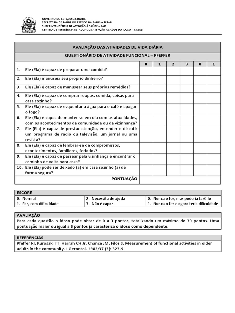 Cuestionario de ACTIVIDAD FUNCIONAL de PFEFFER (FAQ)