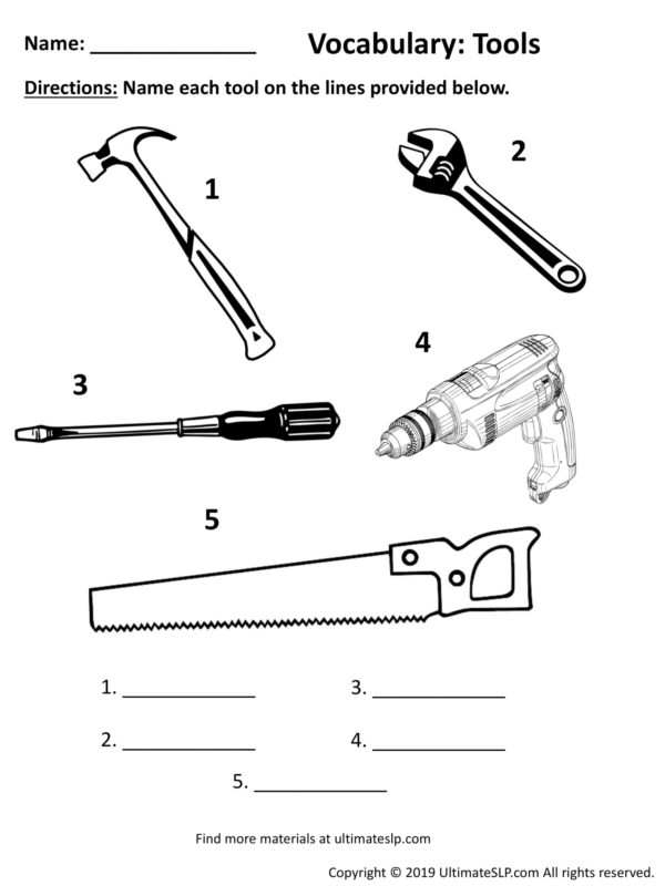 Tool Identification Worksheets