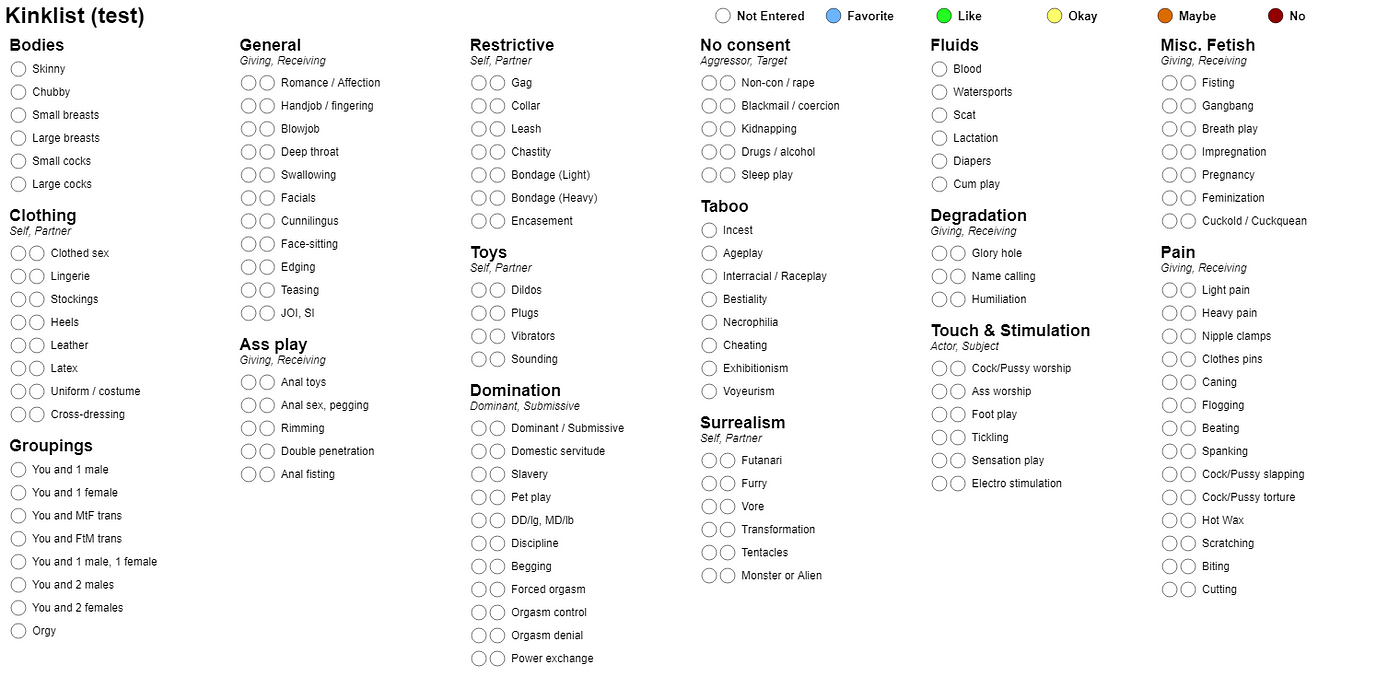 Template Kink List - Top or bottom gags (tape) gags (ring) gags (medical) à gags (open mouth) C h e c k l i s t fo r k i n k y a c ts a n d f e ti s h e s i wi sh we co u l d l i st e ve ry si n g l e ki n ky a ct a n d f e t i sh o u t t h e re , b u t si n ce a l.