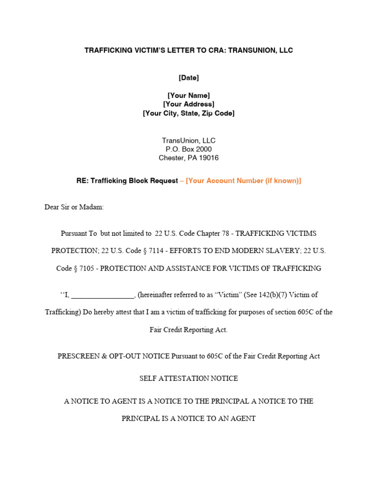 Transunion Letter PDF Human Trafficking Identity Document