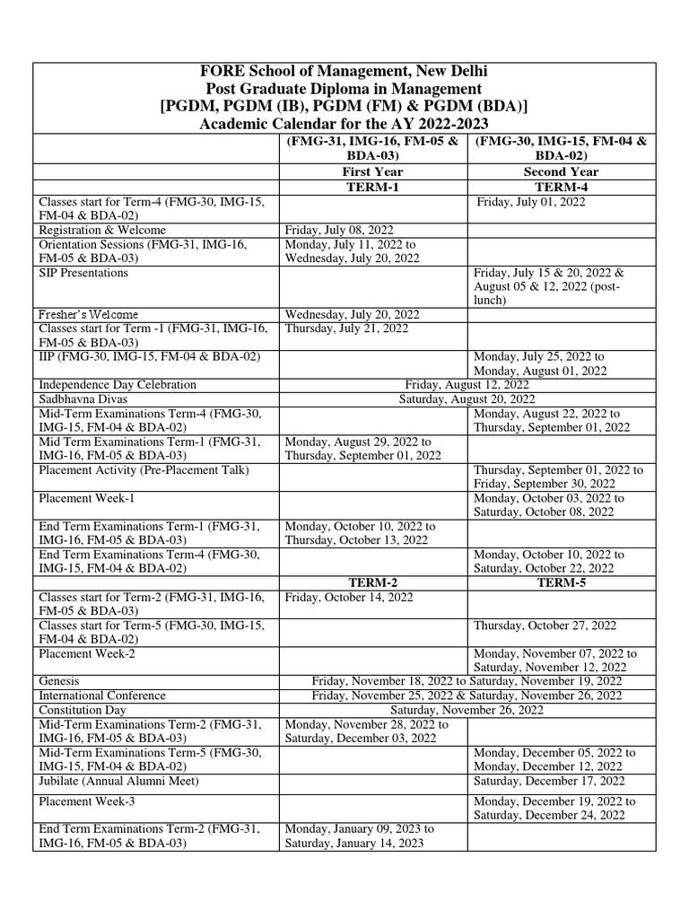 Academic Calendar 2022 23 PDF Academic Term Holidays