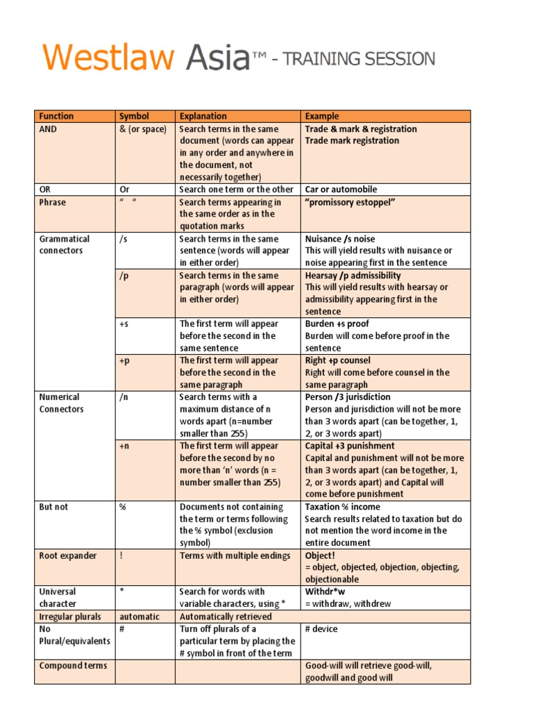 Westlaw Search Connectors Cheat Sheet - At the westlawtm home page, you can search for documents by typing a boolean terms and connectors query or terms describing your. Terms & connectors cheat sheet what it does westlaw lexis bloomberg hein either term can be present (broader) or or or or both terms must. This cheat sheet is a guide to using terms and connectors on westlaw and lexis to narrow or broaden your search. On thomson reuters westlawtm, you can search for documents by either typing a boolean terms and connectors query or typing a plain language. Terms and connectors is a boolean search method in westlaw. You can search for particular terms or retrieve all documents containing your.